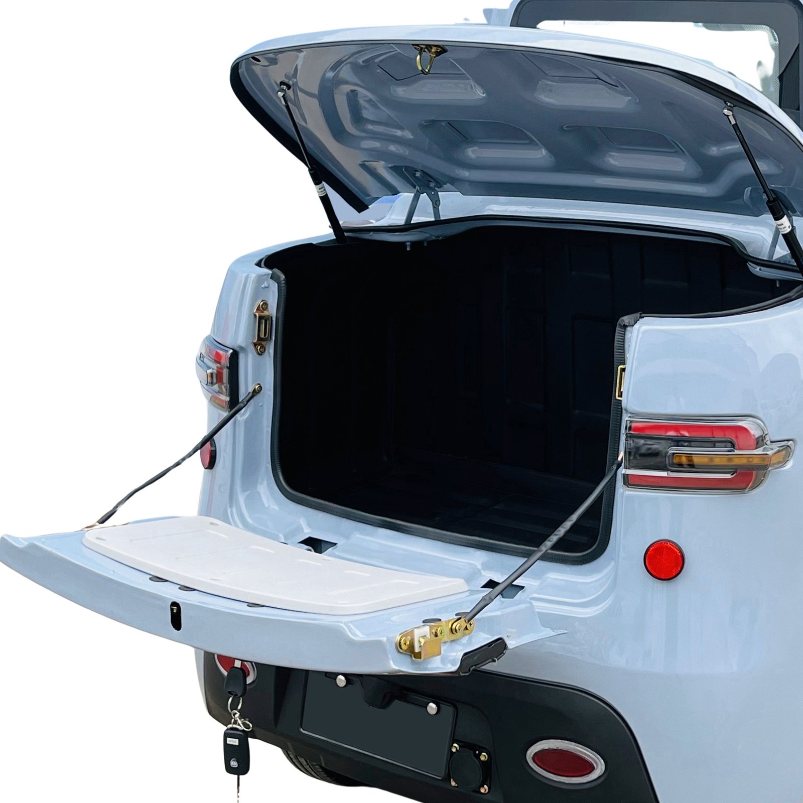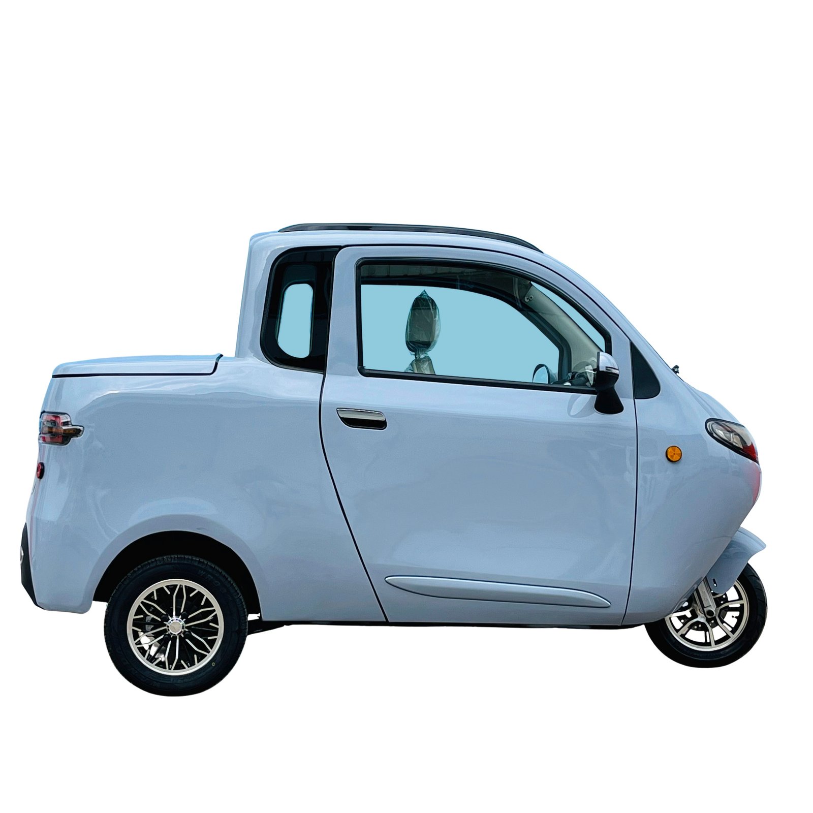 De e-Pickup 25 is een moderne elektrische driewieler die de wendbaarheid van een stadsvoertuig combineert met het comfort van een gesloten cabine en een praktische achterklep voor het vervoeren van vracht. Dankzij zijn constructie en maximale snelheid van 25 km/u is er geen rijbewijs nodig, waardoor hij voor iedereen toegankelijk is.