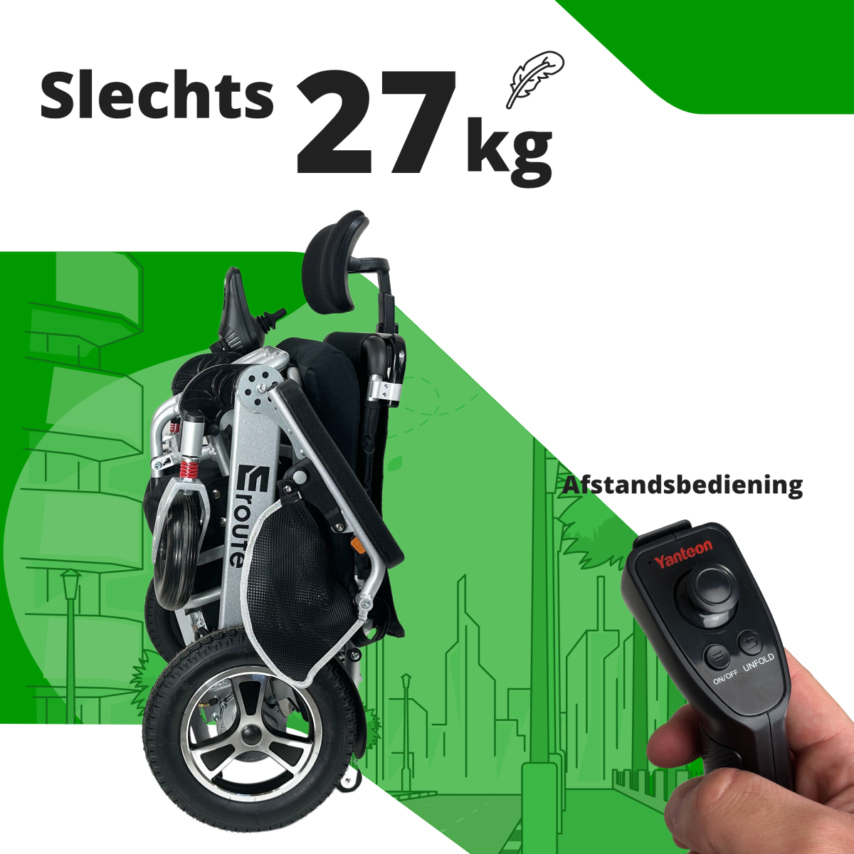 Met de elektrische rolstoel 8000RN kunt u de rugleuning automatisch verstellen met behulp van een afstandsbediening. Blijf mobiel in elke situatie en geniet van een hoog comfort. Het model Eroute 8000 is uitermate geschikt voor reizen met de auto, bus, trein en vliegtuig. De elektrische opvouwbare rolstoel Eroute 8000 met krachtige motor, lithium batterij, bereik tot 25 km, draagvermogen tot 130 kg en 2 jaar garantie zorgt dankzij de functionele voor- en achterschokdempers voor de meest comfortabele rit.